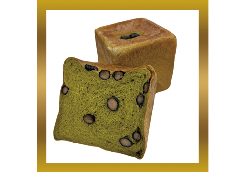 ふっくらと優しい大粒黒豆の柔らかさと、宇治抹茶の香り高い風味をお楽しみいただける食パンです。